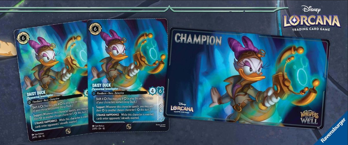 Champion: 1 Daisy Duck – Paranormal Investigator Champion playmat + 1 Daisy Duck – Paranormal Investigator foil promo card